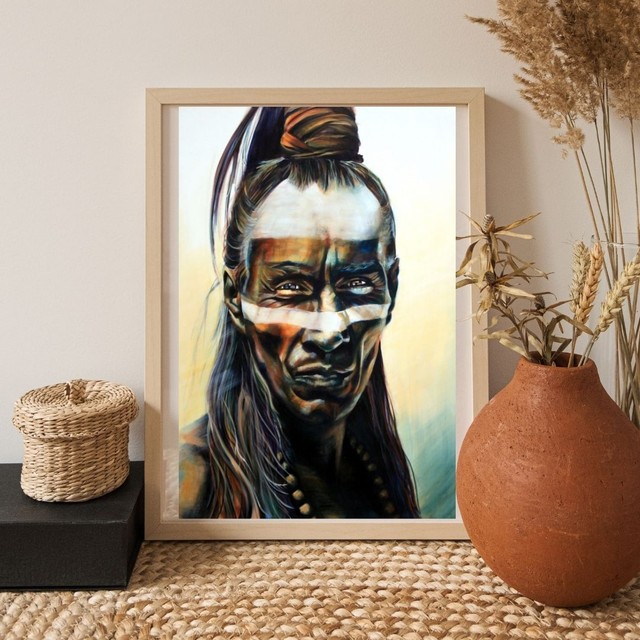Reproduction de tableau original 'Mayan Indian' par l’artiste peintre Bellule.